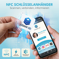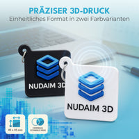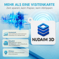 Nudaim3D NFC - Schlüsselanhänger|Digitale Visitenkarte, NFC - Tag, RFID - Badge|NTAG Chip, wartungsfrei|45 x 45 mm, PLA rec ycelbar, wasserfest|Für Messen, Events, Networking|3D - Druck